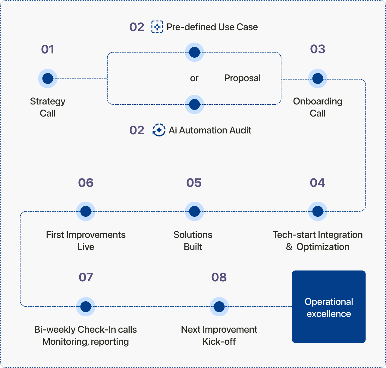We pinpoint the processes that will benefit most from AI and automation, ensuring the highest ROI for your business.
