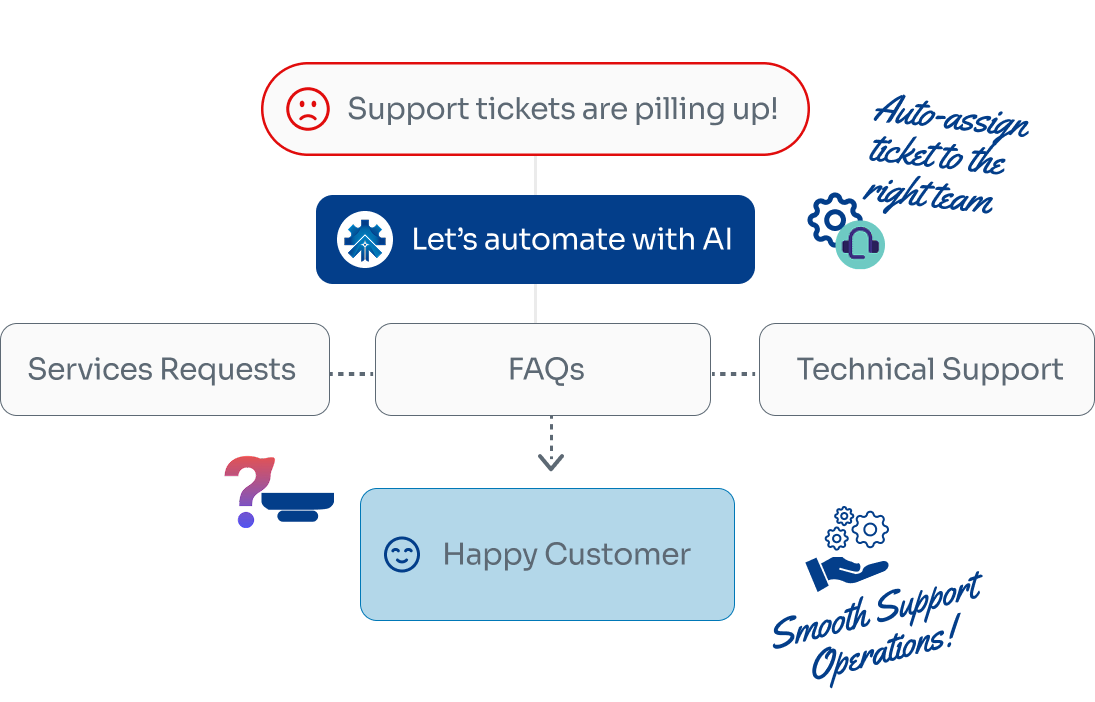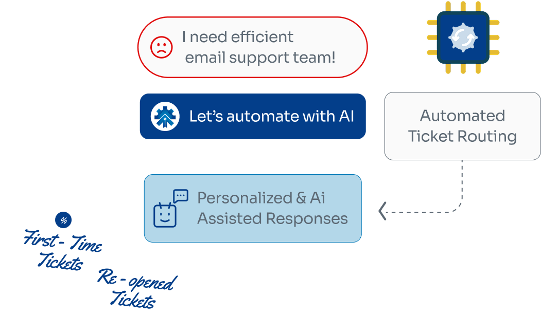 With our tailored AI solutions, you’ll switch from simply resolving tickets to anticipating needs — automating chat, email and feedback loops to deliver seamless, memorable service that earns loyalty and reduces cost.